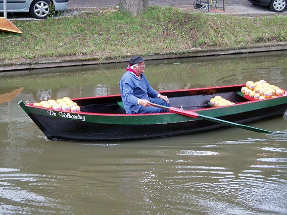 The cheese is delivered to the marketplace by canal.