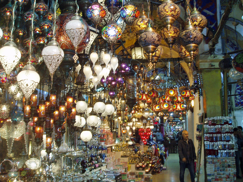 Night skyline of the Golden Horn, seen from the top deck of Voyager.