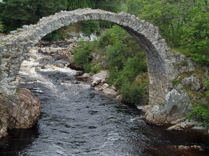 The old packhorse bridge over the River Dulnain at Carrbridge.