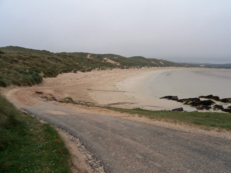 At the far end of Balnakail Bay, the road to Faraid Head.