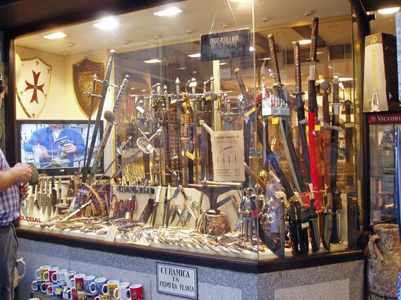 Practically every other shop in Toledo is an outlet for Toledo steel, in the form of knives, swords and suits of armour.
