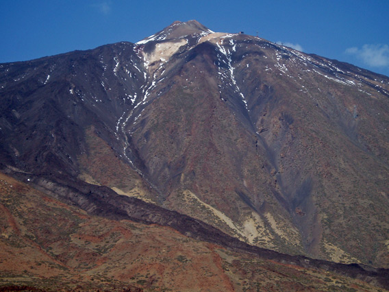 Closer view, with the upper cable car terminal just visible to the right of the summit.