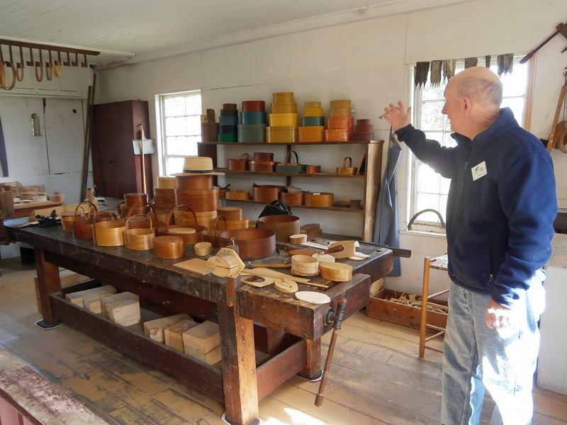 Carpenter demonstrating how the Shakers made boxes and baskets.